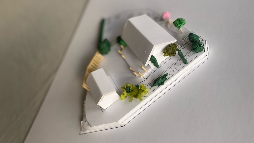 Och det är bra att ha en projektledare, för det behövs. Och då svarar jag: ”Ja, men det kan vi ju alltid mäta!” Vi har en plan som vi gjort upp tillsammans med olika saker som vi göra i trädgården. Och tack vare att jag gick en trädgårdsdesignkurs via Växtverket förra våren så finns en planritning på vår tomt. Där har jag bland annat ritat in köksträdgården med orangeri och pallkragar. Än så länge är det ju bara i vår fantasi och finns bara ”på papper” även om det är digitalt.