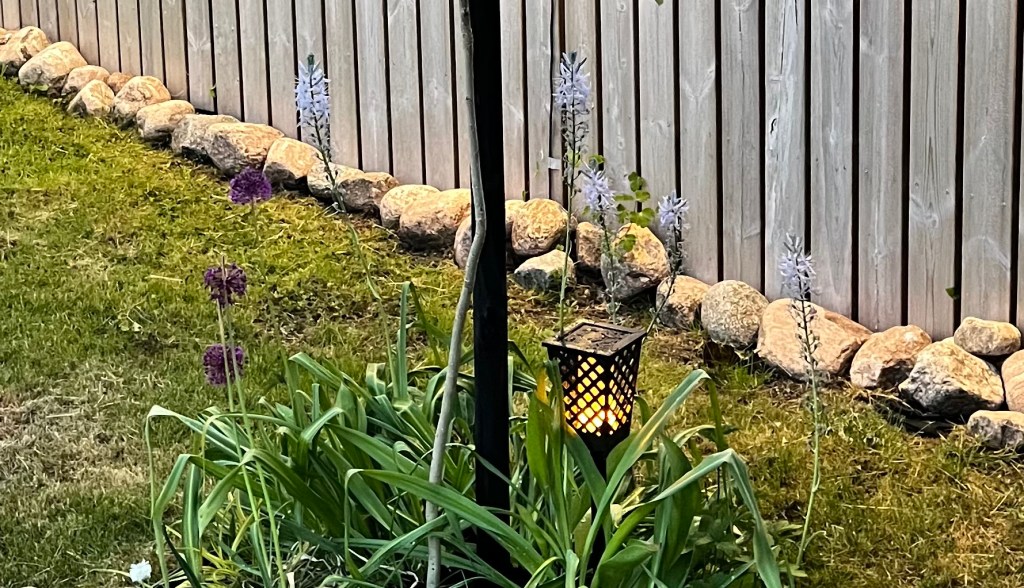 Som avslutning installerades 6 vägglampor som styrs praktiskt med en ljussensor eller via en mobilapp. I underkanten på planket ligger en kraftig markväv för att förhindra ogrässpridning. Framsidans nederkant av planket avslutas med kullersten av granit.