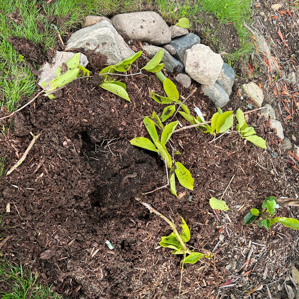 Ibland upptäcker vi att plantor bara har försvunnit. Det kan ha olika orsaker förstås. Otur, fel läge, dåliga förutsättningar, en tuff vinter eller skadeangrepp från djur eller mystiska sjukdomar. Då blir man ledsen. Ett par nyplanterade japanska lönnar, nån magnolia och ett par perenner verkar inte ha klarat vintern i år. Men som Håkan brukar säga – då får vi hitta något nytt att plantera. Och det brukar inte vara så svårt.