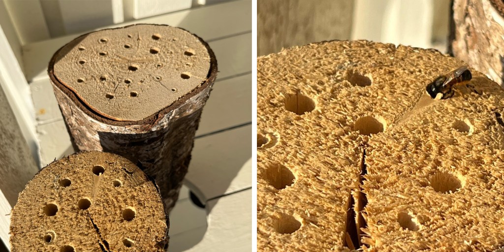Trädgård kanske inte tilltalar alla och ens egna tonåringar är inte alltid så roade. Då är det extra kul när vårt äldsta barn kommer hem från skolan med två insektshotell. Två kapade stockar med olika stora borrade hål med plats för olika sorters insekter. Nu ska vi hitta en bra plats. Helst i ett soligt och skyddat läge i närheten av blommande växter eller träd. Gärna nära vatten, som till exempel ett fågelbad. Är vi snälla mot djuren är de snälla tillbaka. Våra insekter idag behöver all hjälp de kan få. Och det är viktigt för att gynna en biologisk mångfald.