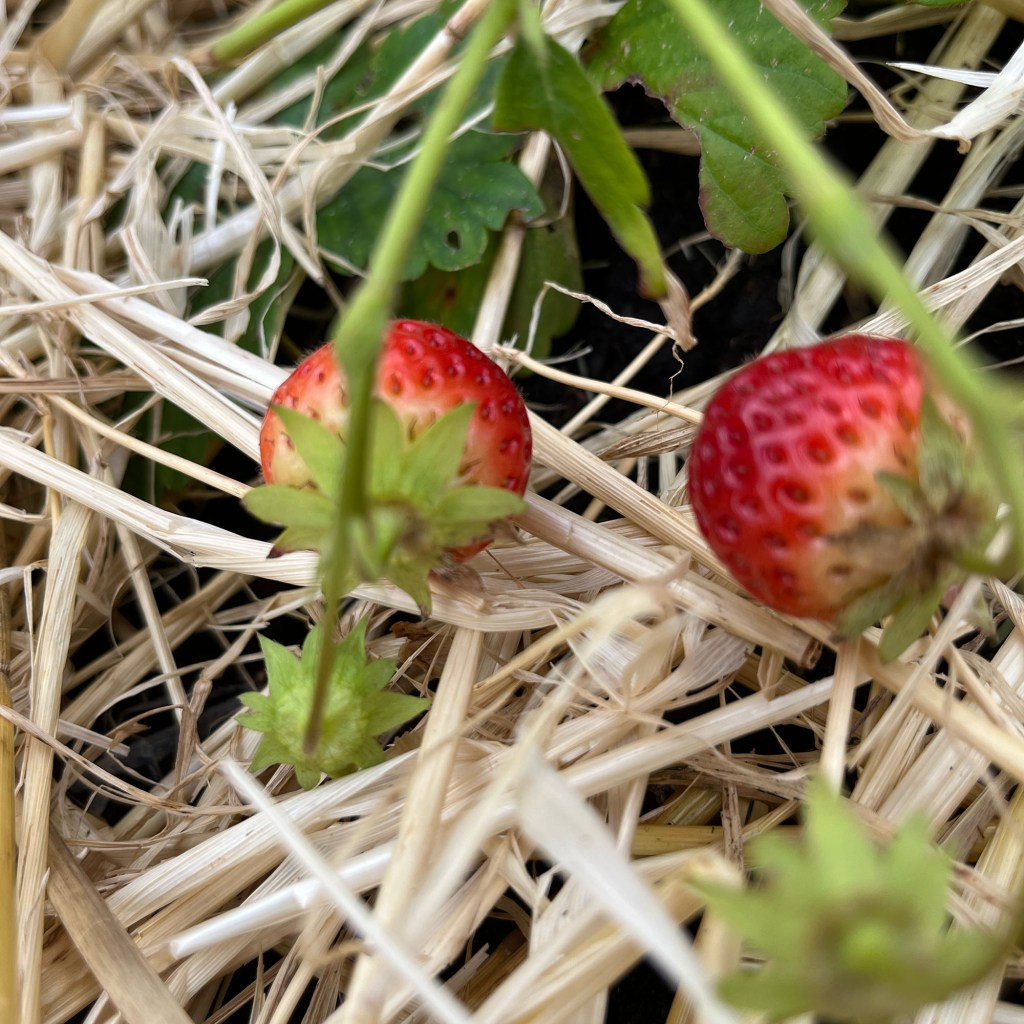 Här har vi tjuvstartat med våra jordgubbar och väntar nu med att plantera resten tills staketet är klart.