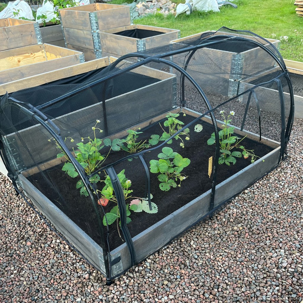 Nu är vår köksträdgård äntligen klar! Med små steg har vi förvandlat en plätt på vår gräsmatta till ett ”ointagligt fort”! Trots att fåglarna hann smaka på några nyplanterade hallon innan vi satte upp bärnätet, känns allt fantastiskt. Det gäller att balansera den inhägnade trädgården så att det inte blir som en bur, för vi vill ju också njuta av odlingen.