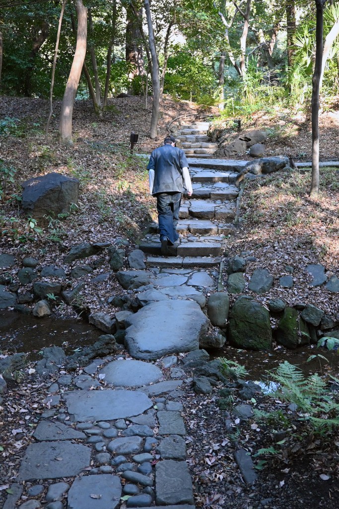 Förutom vattnets centrala roll har stenen en lika viktig plats i trädgården. Den finns i gångar, broar och stödmurar, men också som enskilda element mitt i växtligheten. Allt är utfört på ett lågmält och genomtänkt sätt, som om det självklart skulle hört dit redan från början. Det japanerna verkligen behärskar är konsten att skapa en seminaturlig upplevelse. Du ser att det är anlagt, men det känns ändå helt naturligt.