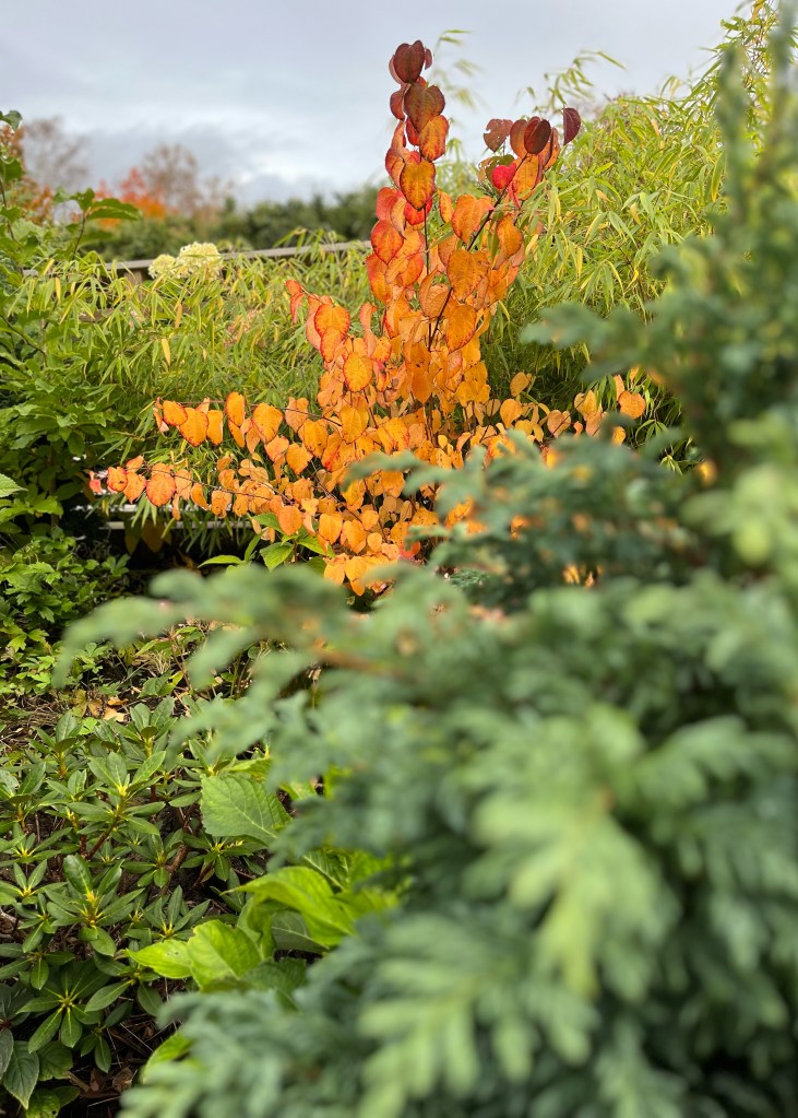 Näbbskenkamelia – Stewartia rostrata, Katsura Göteborg – Cercidiphyllum japonicum, Japansk lönn Starfish – Acer palmatum, Japansk lönn Orange dream – Acer palmatum, Japansk magnolia – magnolia kobus, magnolia Merill – magnolia x Loebneri, Stjärnmagnolia – magnolia stellata, Théhusmagnolia/Buskmagnolia – magnolia sieboldii, Japanskt körsbär Kanzan – prunus serrulata, Dvärg-rhododendron Peter Seleger -rhododendron calostratum, Aucuba Rozannie – aucuba japonica, Bergbambu Blue dragon – fargesia papyrifera, Fembladig akebia – akebia quinata, Bergingefära – roscoea auriculata pururea f. alba, Hakonegräs – hakonechloa macra, Rödbladig flikrabarber – rheum palmatum, Näbbskenkamelia – stewartia rostrata, Japansk jordorkidé – bletilla striata, Japansk fiberbanan – musa basho, Kamelia Spring festival – camellia cuspidata