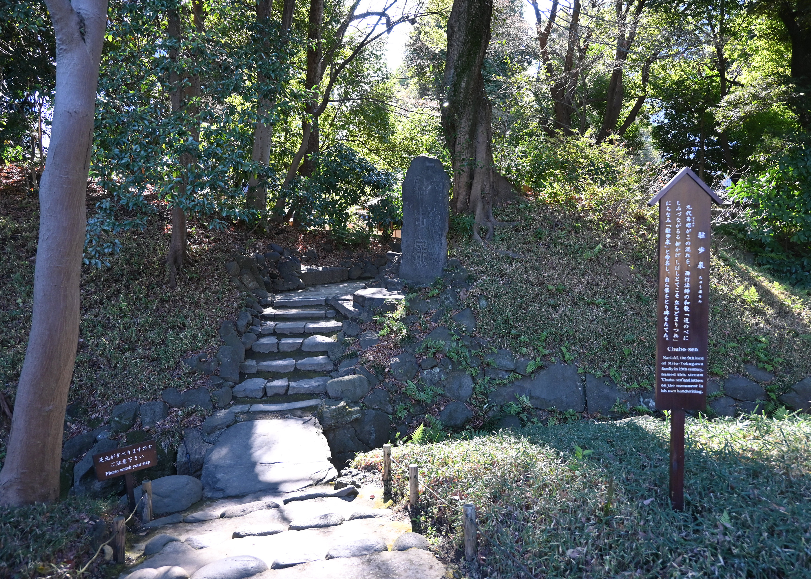 Många japanska trädgårdar och parker hämtar inspiration från kända platser eller landskap i landet. Ofta finns även texter som berättar om platsen eller om historiska händelser, vilket tillför en extra dimension och gör upplevelsen både mer levande och lärorik.